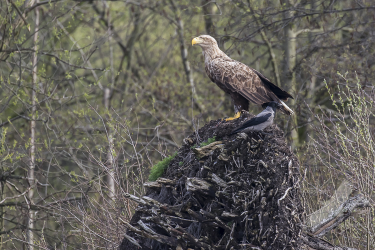 Zeearend - Haliaeetus albicilla, Bonte Kraai - Corvus cornix, Stepnica Polen